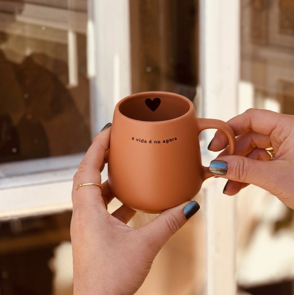 Caneca “a vida é no agora” + saquinho de organza presenteável