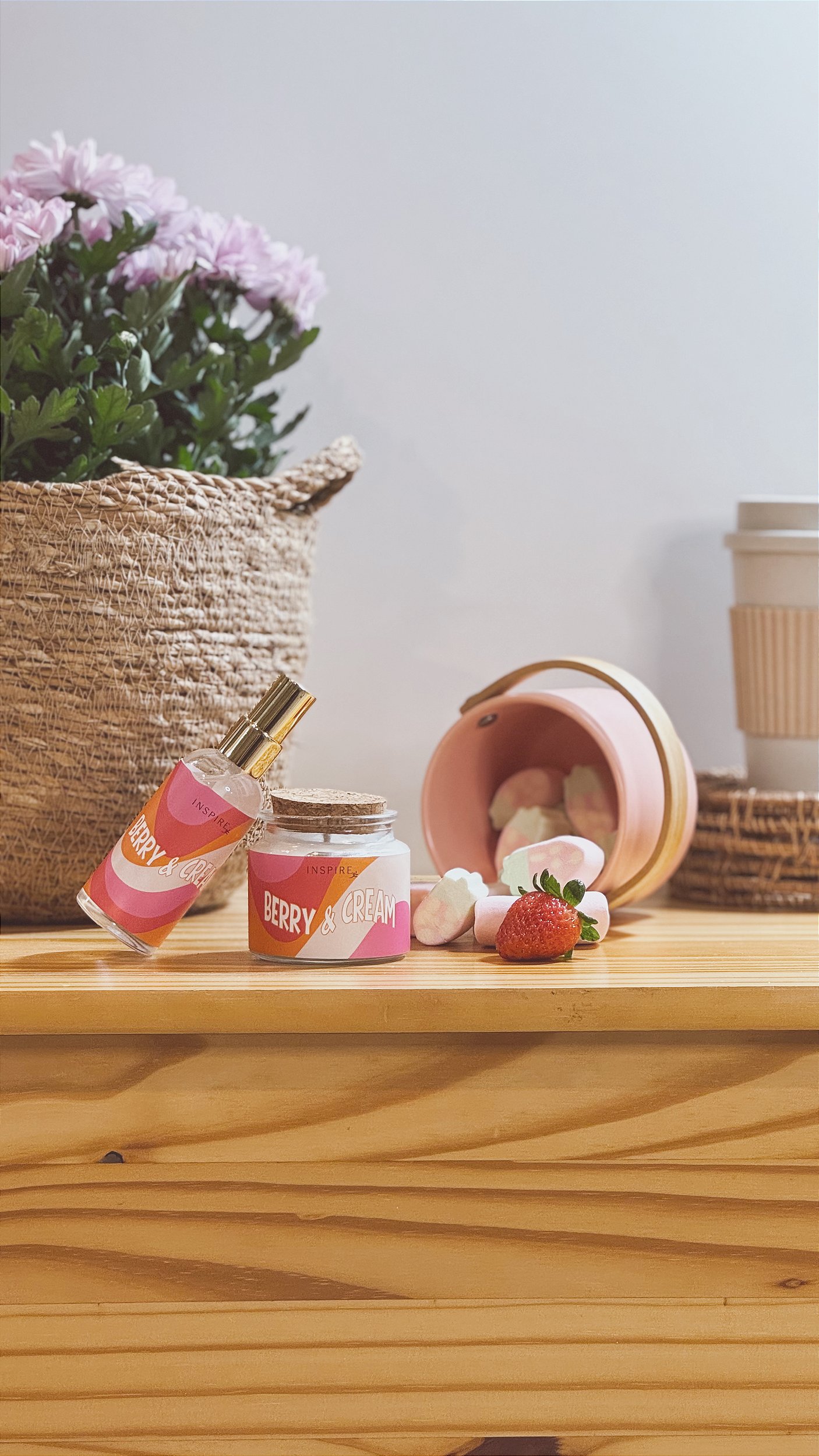 Doce, cremoso e delicado, o aroma de morango com chantilly envolve o ambiente com uma nostalgia leve e acolhedora, como aquelas balas rosadas que marcaram a infância e despertam memórias felizes no primeiro respiro.